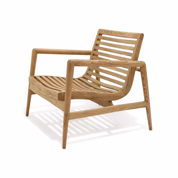 Unikt designad utegrupp av cederträ i stilfull design bestående av två träfåtöljer, en träsoffa och ett soffbord för uteplatsen