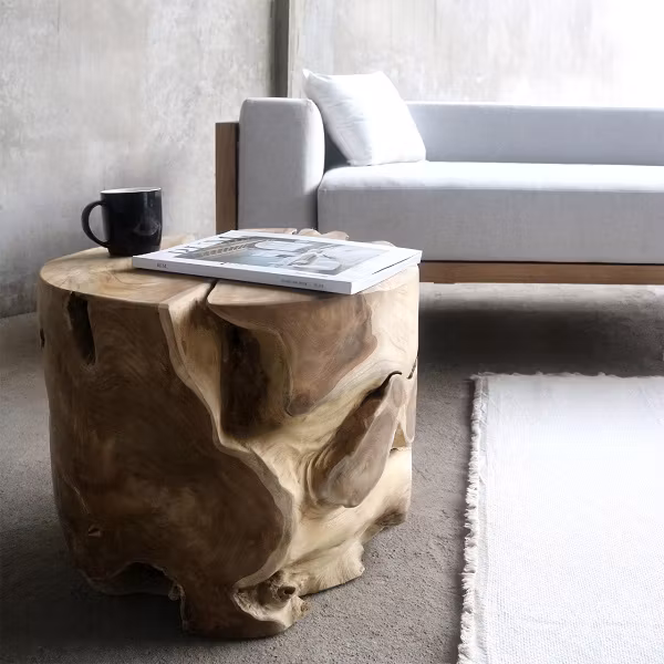 Det här sidobordet är handgjort av teakrot – ett material som är i allra högsta grad miljövänligt. Teakroten är en restprodukt som tas om hand och blir till unika möbler och heminredningsdetaljer. Förstås är materialet FSC-märkt precis som våra övriga möbler.