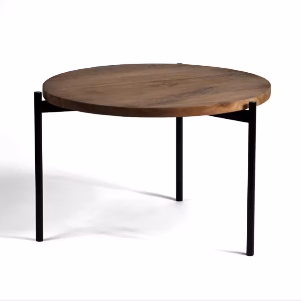 Det unika bordet har en bordsskiva med slät yta i olika nyanser av teak som väcker liv i valnötsfärgen som borden är bestrukna med.