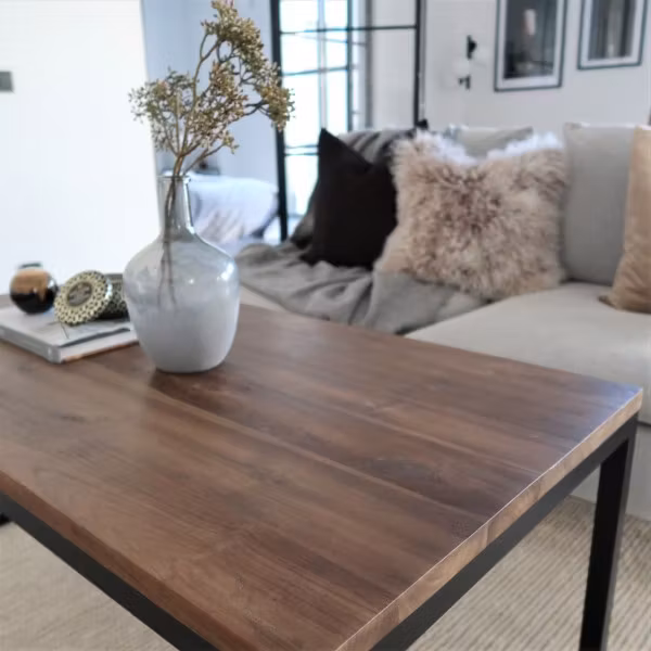 Det här är ett bord som passar både mer lantlig, rustik inredning men också modern, urban stil. Det är ett tåligt och hållbart soffbord som vi har behandlat med ekologisk hårdvaxolja för att ge extra skydd mot fläckar och slitage.