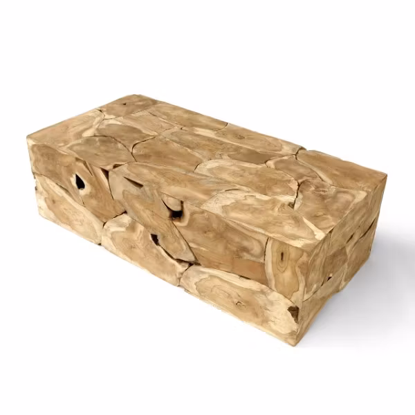 Det här originella soffbordet är gjort av ett miljösmart spillmaterial – roten från teak. Soffbordet mäter 120x60 cm och är 35 cm högt. Det är handgjort av massiva 2-2,5 cm tjocka träskivor med en stomme inuti.