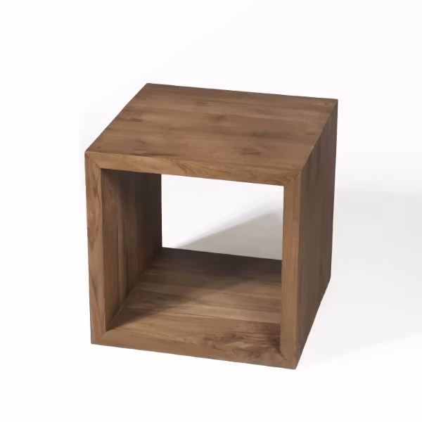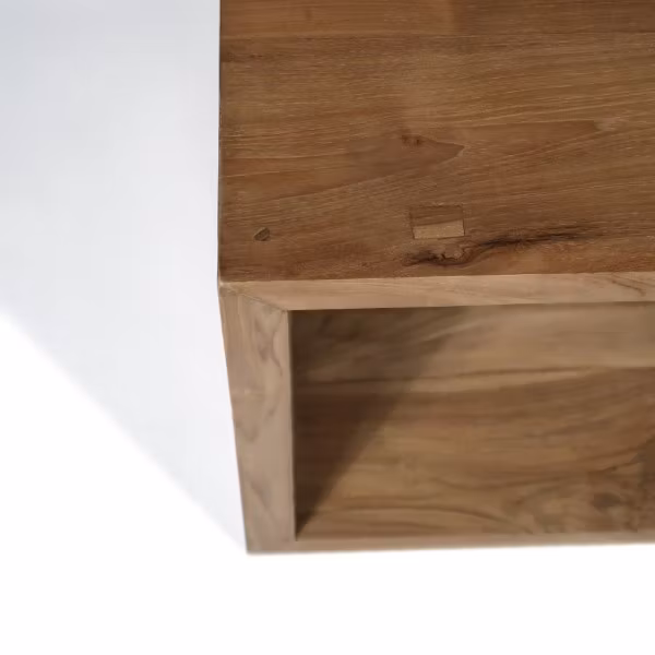Detta stilrena och moderna designsoffbord består av två lika stora kubformade enheter tillverkade av massiv återvunnen teak av högsta kvalitet där träskivorna är 4 cm tjocka och har en slät yta. De två borden är i storleken large och kan kombineras på olika sätt. Till exempel som ett soffbord med olika sidor fram, två sidobord eller sängbord. Man kan flytta runt dom lite som man vill och efter behov.