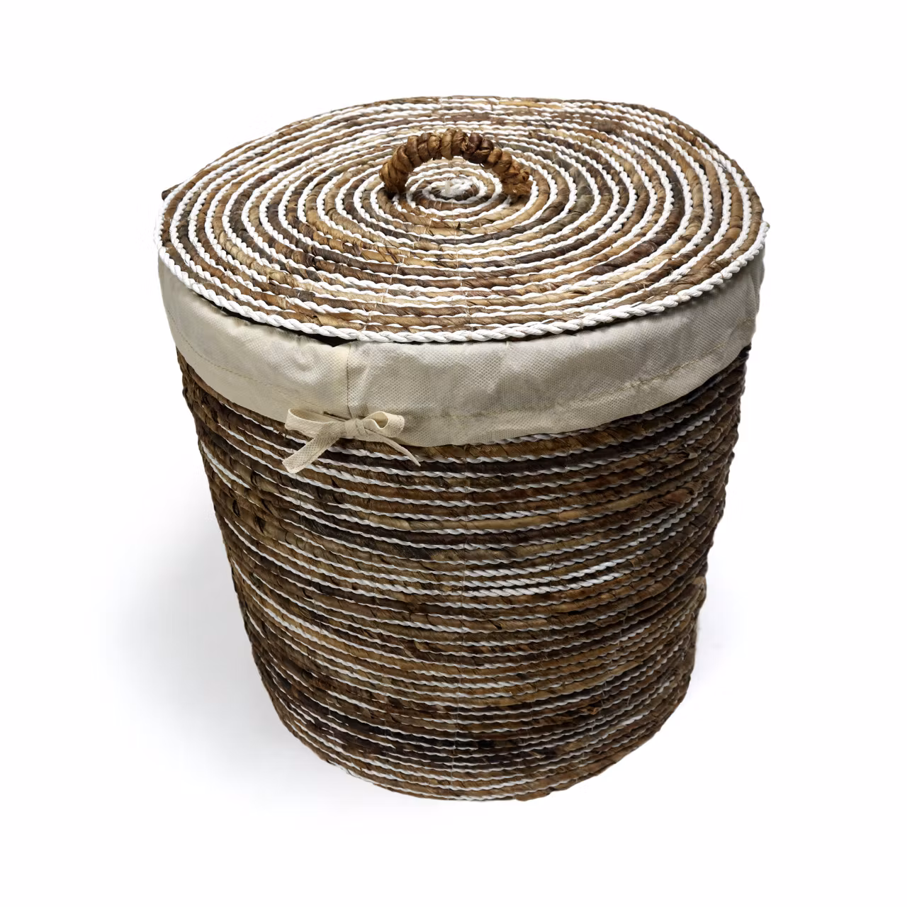 Det här är en både snygg, praktisk och miljövänlig förvaringskorg eller tvättkorg. Den är flätad för hand av mjuka och formbara sjögräs i ett randigt mönster med milda naturfärger.
