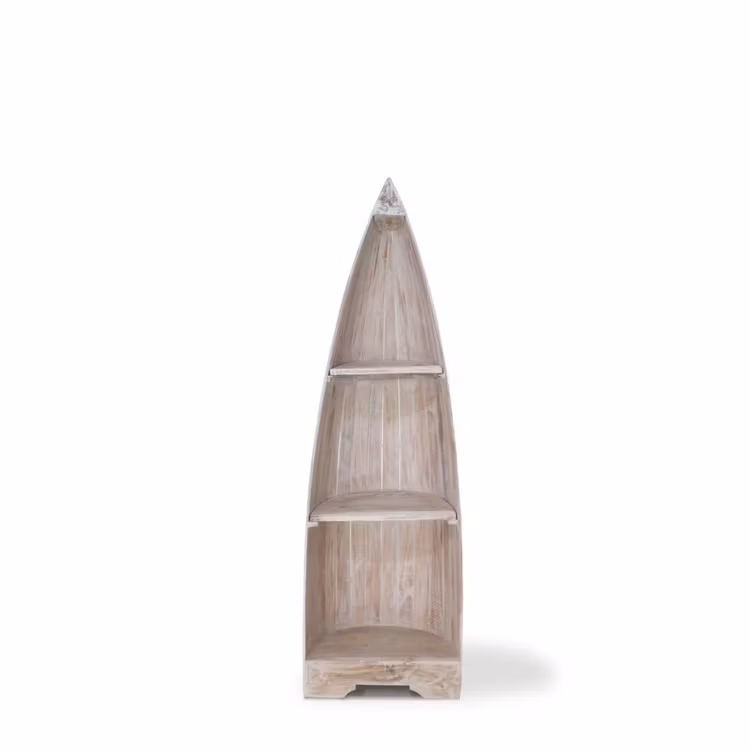 Det här är en handgjord trähylla av finaste mahogny som bestrukits med vit färg för att skapa en whitewash effekt. Naturligtvis är det här en hylla för alla båtälskare, men nog passar den i vilket hem som helst – en praktisk hörnhylla som ger din inredning en personlig prägel.