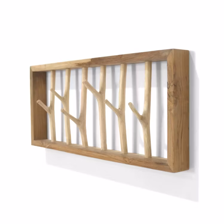 Om du vill skapa en ombonad och rustik känsla i hallen, sovrummet eller badrummet rekommenderar vi den här unika klädhängaren. Hängaren består av en ram där råa teakgrenar har fästs med kvistar som fungerar som krokar. Perfekt för kläder eller handdukar där du behöver skapa ordning på ett snyggt sätt.