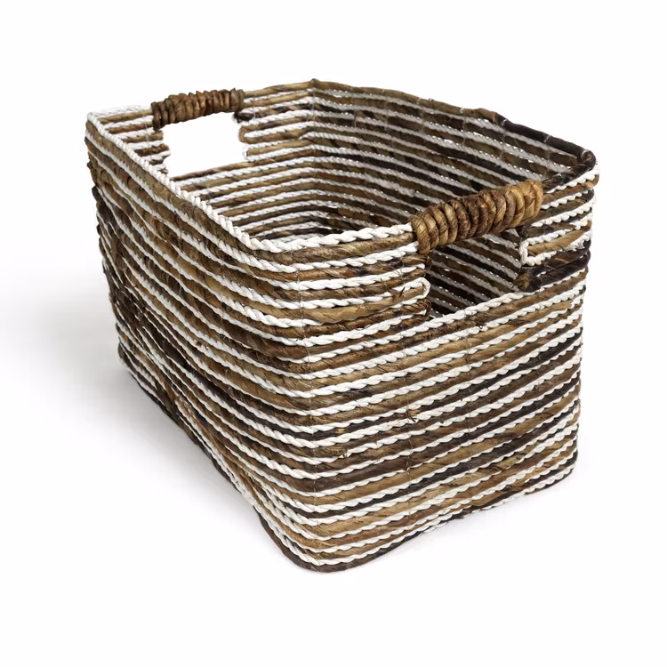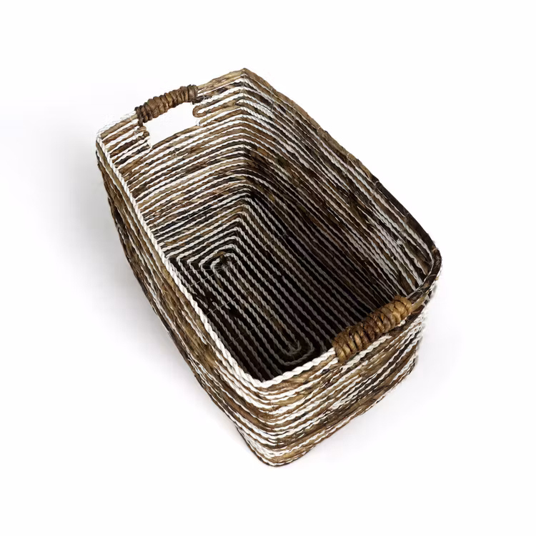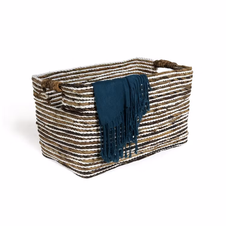 Snygg flätad förvaringslåda (set 2 st) i avlång form – en handgjord förvaringslåda som är tillverkad av naturmaterial i naturliga färger och har två praktiska h