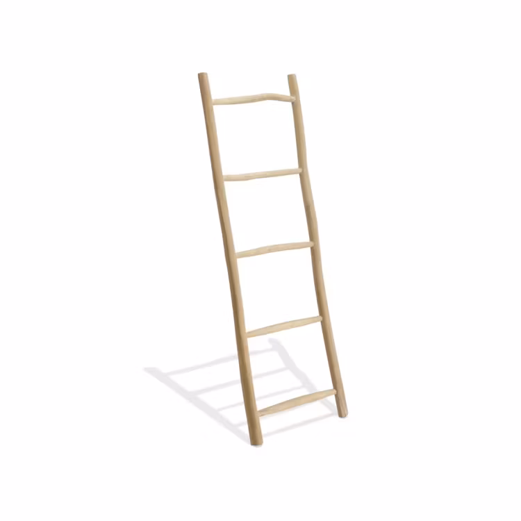 Stegen kan användas som handduksstege i badrummet för att hänga handdukar på – teak är ett mycket hållbart träslag som också tål fukt. Eller så kan du placera den i hallen som klädstege för halsdukar och andra klädesprylar, i sovrummet för att hänga kläder eller filtar på eller i vardagsrummet där du kan använda den till filtar eller till exempel tidningar.