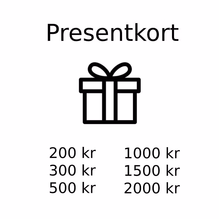 När du kliar dig i huvudet över vad du ska ge som födelsedagspresent, inflyttningspresent eller julklapp är ett presentkort den bästa lösningen. Med ett presentkort kan mottagaren välja själv och slipper be om kvitto för att byta en present som inte blev helt rätt. Våra presentkort finns i många olika valörer - men skulle du ändå sakna en valör som du vill ge bort kan du bara kontakta oss så löser vi det förstås.