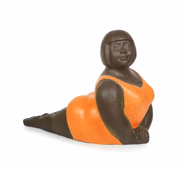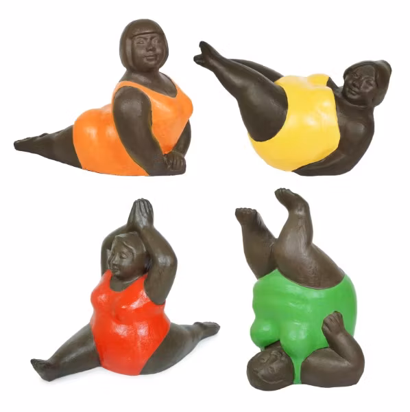 Skulpturer av betong föreställande Baddamer stora set 4 st i färgglada baddräkter – fina dekorationer för ditt hem eller trädgård.