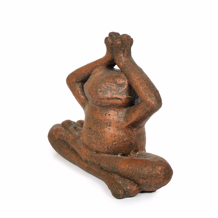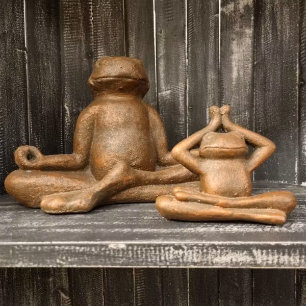 Den här rara lilla grodan är en handgjord staty i betong målad i rostfärg som finns i flera olika storlekar. Grodan sitter i meditativ ställning och för den som väljer att ställa fram den kan det vara en meningsfull inredningsdetalj som påminner om att koppla av och ladda batterierna.