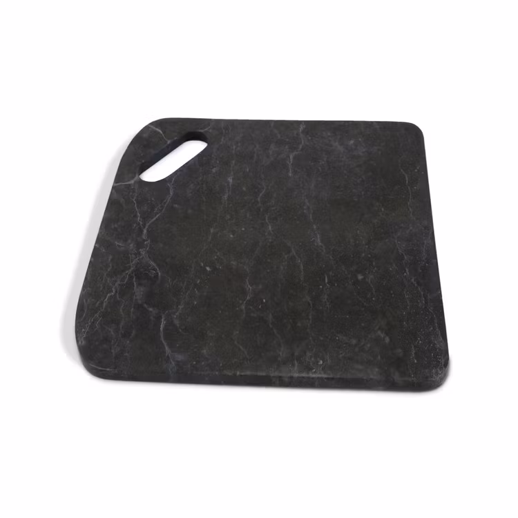 Vacker och rustik skärbräda av svart polerad marmor – en handgjord skärbräda som är perfekt också som uppläggningsfat för delikatesser, frukt och grönt.