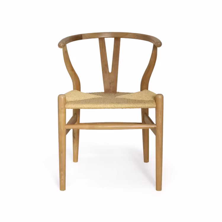 Designstol i teak med y-format ryggstöd och flätad sits. Klassisk modell som utstrålar en tidlös design med inspiration hämtad från 50-talet. Den y-formade baksidan ger ett karaktäristiskt utseende och den stilrena designen är ett smakfullt val runt middagsbordet.