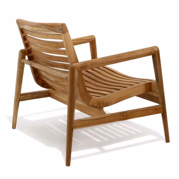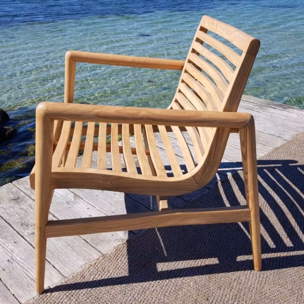 Skötselråd: Teak grånar naturligt med tiden om möbeln står obehandlad utomhus. Om du vill behålla mer av den ursprungliga träfärgen kan du då olja in fåtöljen med teakolja en eller två gånger om året