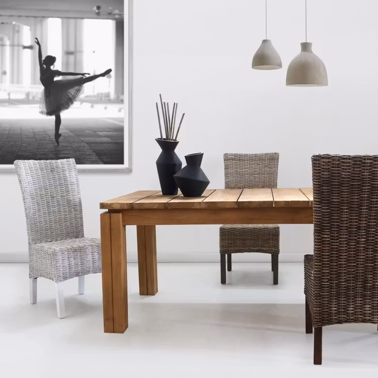 Elegant och bekväm matstol av naturrotting med ben av massivt trä – en handgjord rottingstol av högsta kvalitet som finns i flera och färger.