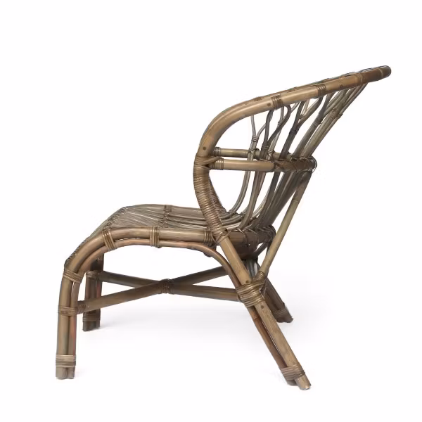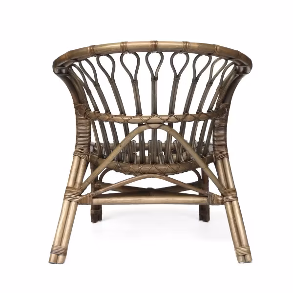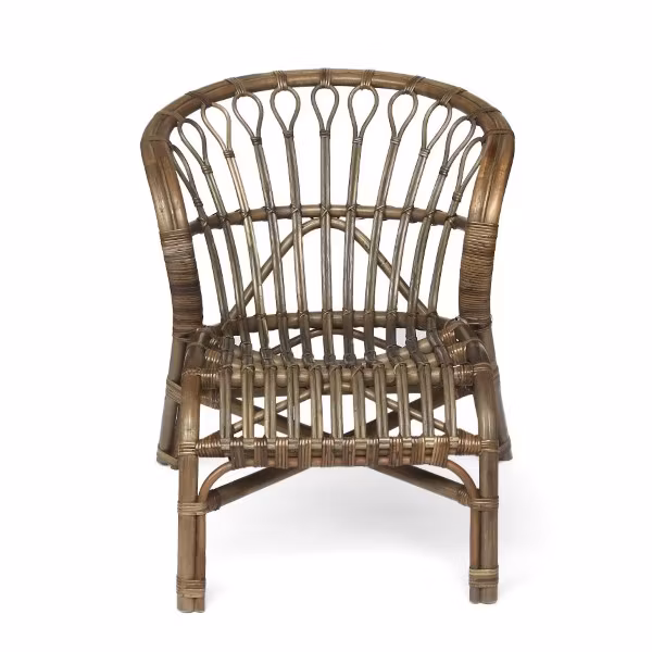 Det här är en av våra handgjorda rottingstolar av naturrotting som finns i olika modeller. Just den här har en särpräglad design som gör att den passar i både moderna hem och mer rustik miljö.