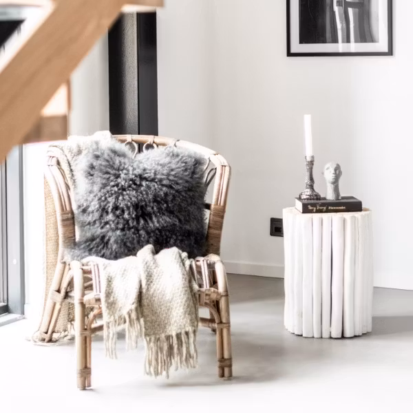 Med en kudde och en pläd är denna fåtölj perfekt att chilla i med en kopp te och en god bok. Stolen fungerar också utmärkt som utemöbel – solo eller i par. Det ingår en enkel vit dyna till varje stol.