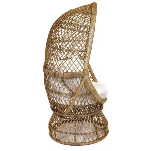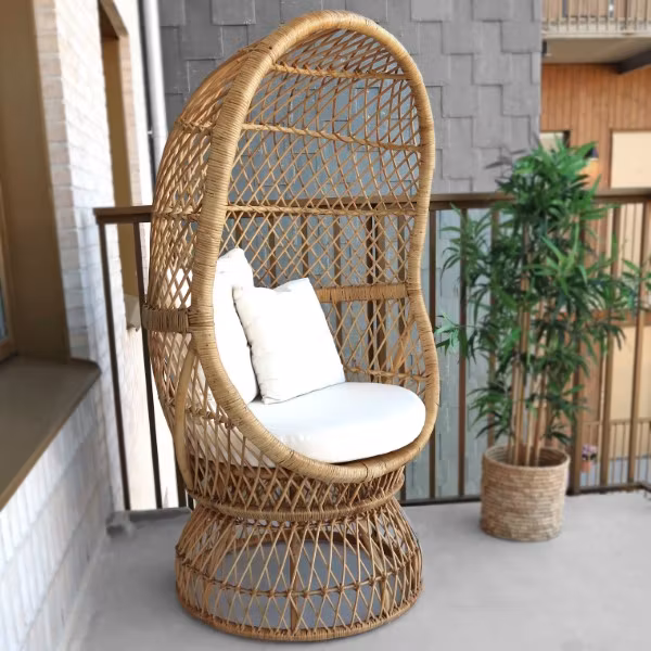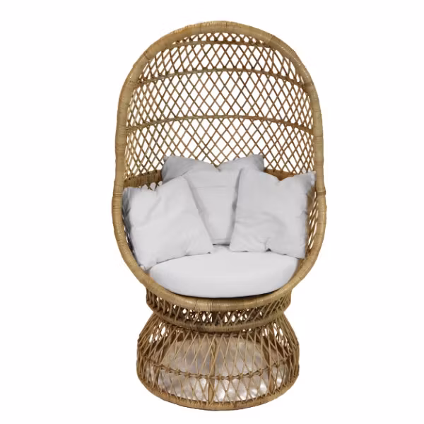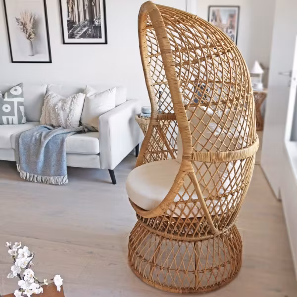 Den här otroligt bekvämma rottingfåtöljen vill man inget annat än att krypa in i med en bra bok och en kopp te. Den äggformade designen får vem som helst att känna sig omfamnad och trygg. Den är dessutom lätt att flytta runt på.